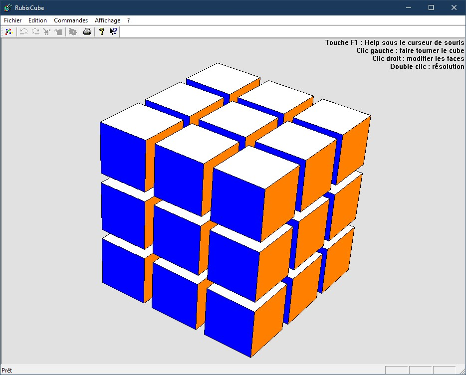 Ce programme, un simulateur de Rubik's Cube (3*3*3), permet de reproduire toutes les actions qu'un amateur de ce genre d'objet peut entreprendre. Il permet de recopier un Cube réel, soit manuellement avec le clavier de l'ordinateur et la souris soit avec un scanneur à plat. Il prend en compte les déformations (mouvements de faces) du Cube réel et bien entendu il comporte plusieurs fonctions de résolutions, permettant en final de réordonner le Cube physique. Il peut aussi présenter une séquence de mouvements du Cube dans un gif animé.