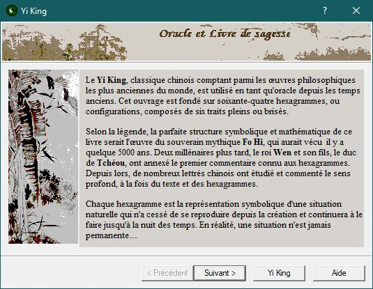 Une attention particulière a été de respecter la logique du mécanisme de divination en se référant à la méthode des pièces de monnaies.